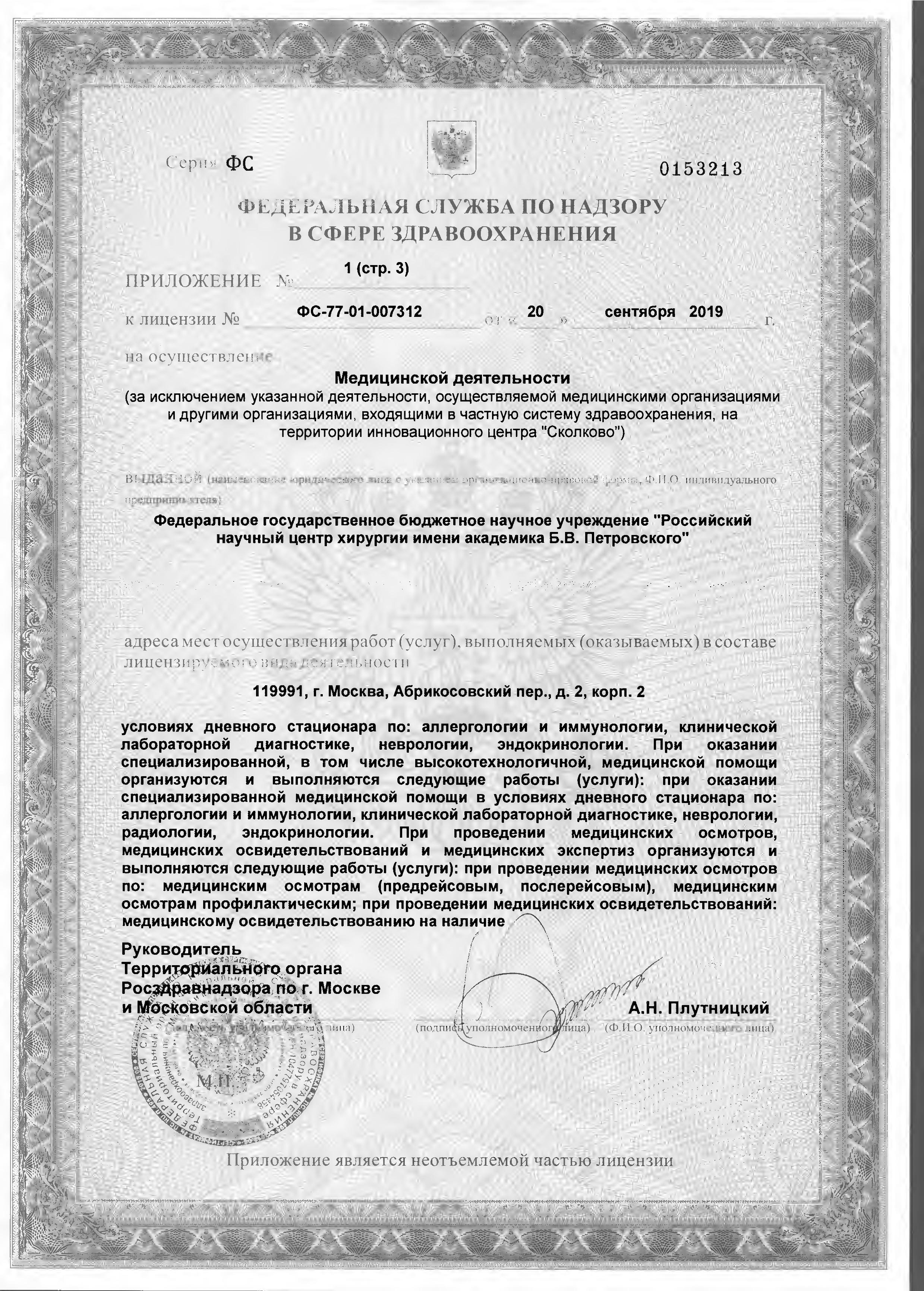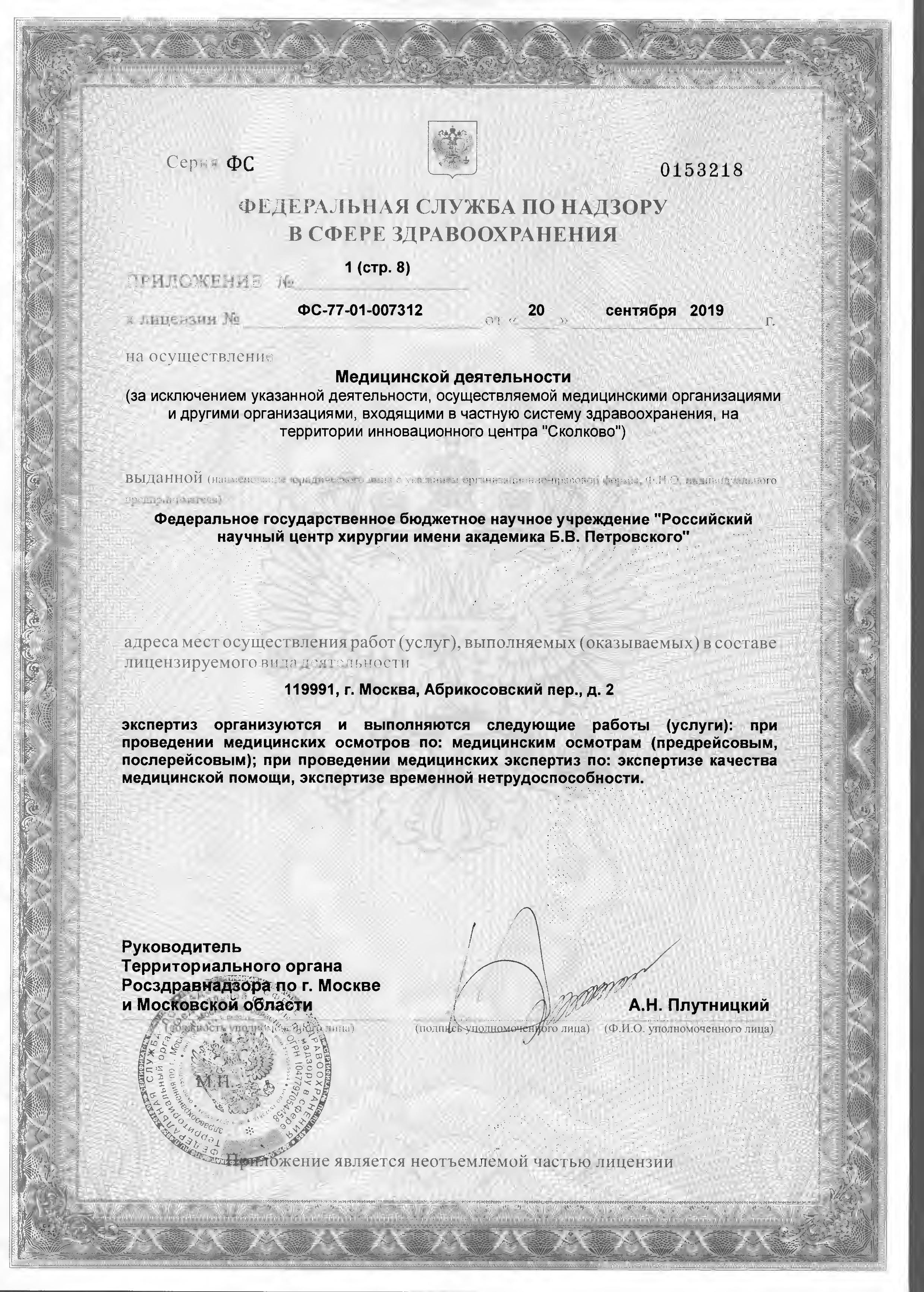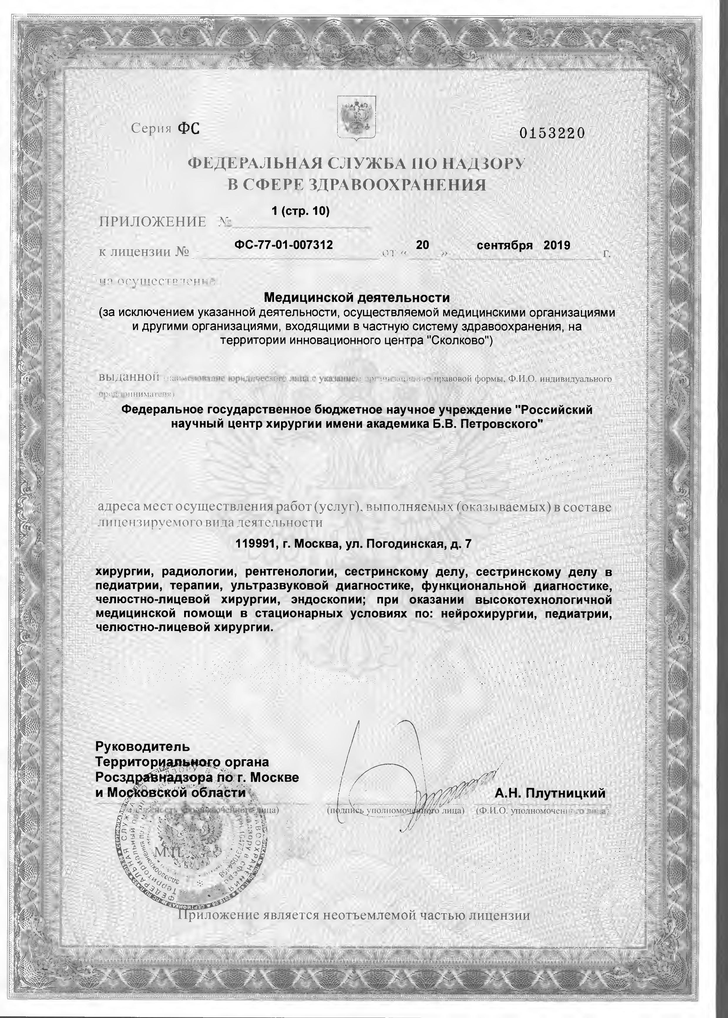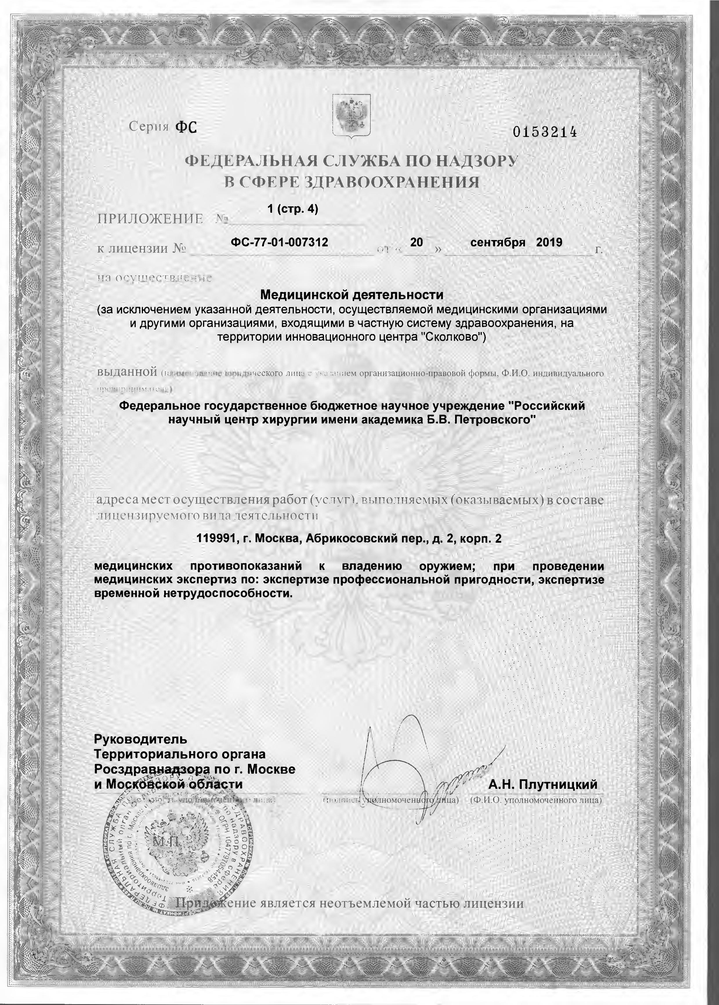 ФГБНУ «РНЦХ им.акад. Б.В. Петровского» ОГРН: 1027739267214 ИНН: 7704030124 119991, г. МОсква, Абрикосовский пер., д.2